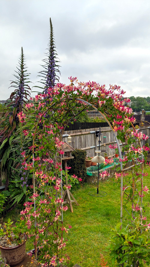 Today's picture is yet another one of the honey-suckle. Right now, we are so pleased our garden is beautiful. We are enjoying it as much as we can.