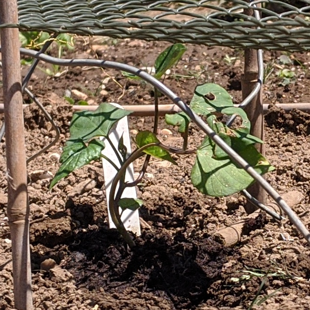 The weather has been really hot and dry. There has been no rain for almost a month. They say it was the driest May since ages. Things are growing down the allotment. The image here is my attempt at sweet potatoes. They are supposed to grow up in to the net above them. Will this work? I have no idea.