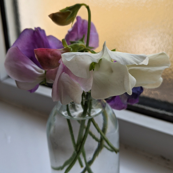 The allotment is beginning to require more of our time. We have planted more beans and carrots. In return, we are eating strawberries, and picking sweet peas.